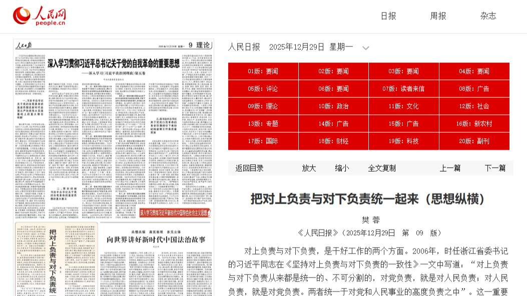对上负责与对下负责,是干好工作的两个方面。2006年,时任浙江省委书记的习近平同志在《坚持对上负责与对下负责的一致性》一文中写道:“对上负责与对下负责从来都是统一的、不可分割的,对党负责,就是对人民负责;对人民负责,就是对党负责。两者统一于对党和人民事业的高度负责之中”。这一重要论述科学阐释了对上负责与对下负责的辩证统一关系,包含着深刻的哲理智慧和方法论意蕴。对上负责,根本上就是要对党负责,就是要始终坚持党中央集中统一领导,准确理解并坚决执行上级的正确意见,并结合实际创造性抓落实,让各项决策部署落地见效。坚持对上负责,才能把准政治方向,确保在复杂形势面前不偏航。对下负责,就是要对人民负责,向下扎根,切实维护好人民群众的根本利益。人民立场是马克思主义政党的根本政治立场,这就决定了我们的一切工作都必须坚持以人民为中心的价值取向。只有坚持对下负责,才能凝聚民心民力,不断夯实党的执政基础。“对上”与“对下”是有机统一的。若只重“对上”而忽视“对下”,就会脱离群众、脱离实际;若只讲“对下”而偏离“对上”,则难免陷入各自为政、方向不明的困境,影响事业发展全局。我们党一贯坚持对上负责和对下负责的统一